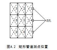 按斷面尺寸分成若干等面積小矩形塊,測點位于等面積小矩形塊中心,如圖A.2所示,每個小塊面積要小于0.1m2。