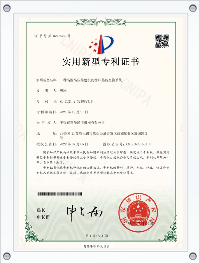 一種高溫高壓染色機的循環(huán)熱能交換系統(tǒng)專利