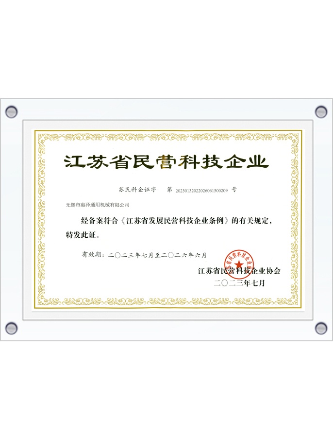 江蘇省民營科技企業(yè)證書