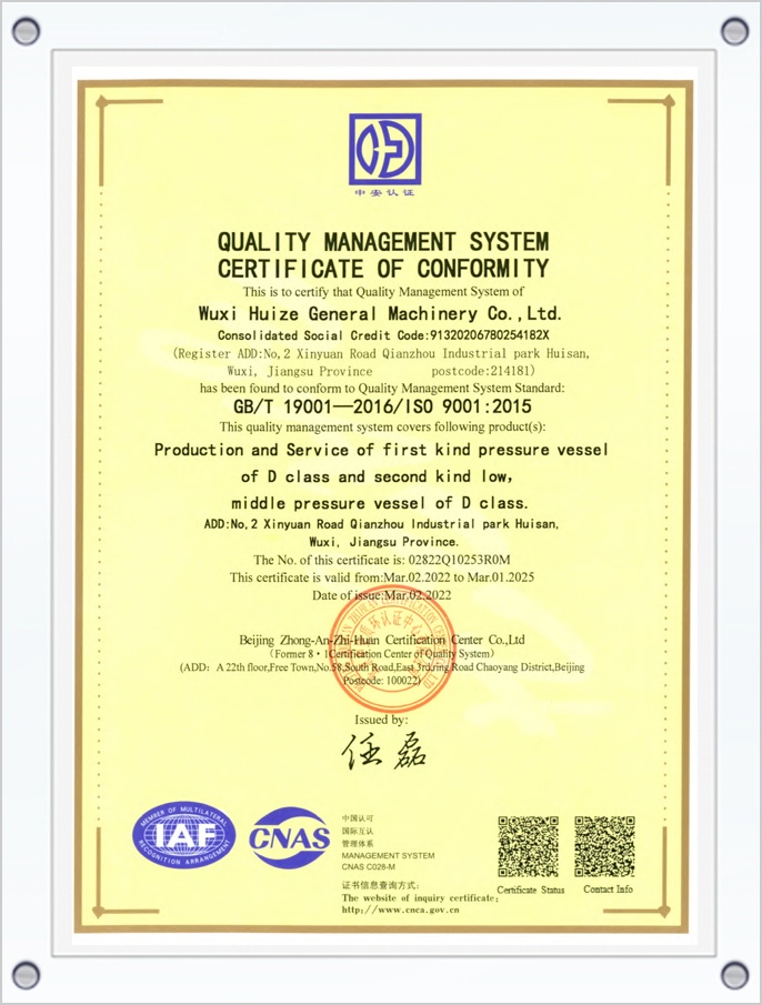 ISO9001質(zhì)量管理體系認(rèn)證證書英文版