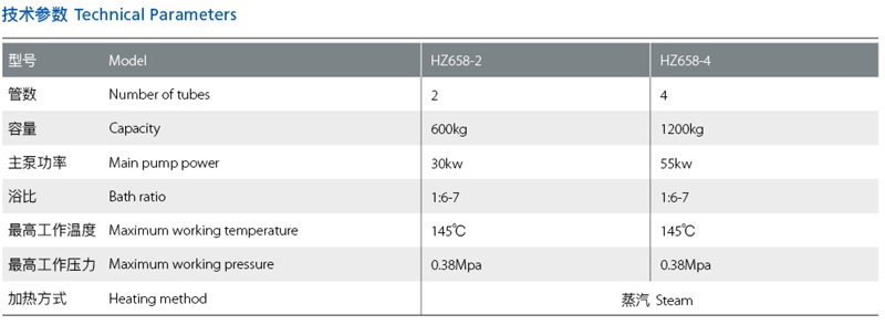 HZ658系列高溫高壓噴射染色機(jī)產(chǎn)品優(yōu)勢(shì):高效益,1.薄、中、厚型布種之投布量大幅提高,降低單位成本并減少缸差。2.缸體特殊內(nèi)網(wǎng)設(shè)計(jì),減少用水量使浴比視處理布種最低可達(dá)1:6左右。